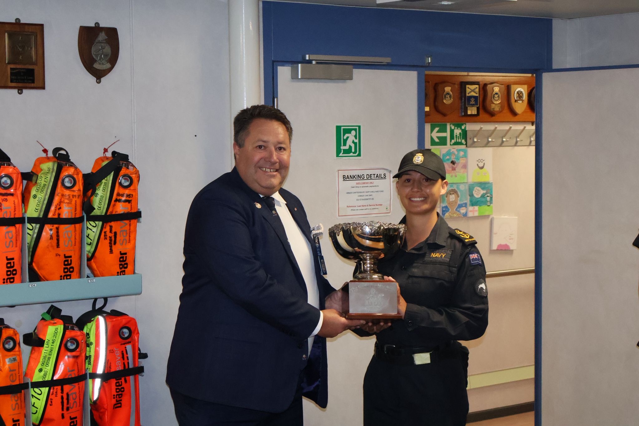 The World Traders Bowl was presented for a second year on 3 March 2026 onboard HMNZS Canterbury. There was more than a “fair wind” so the presentation took place below deck this year. Our WT Liaison Officer, Liveryman Honorary Captain Bevan Killick visited the HMNZS Canterbury with the newly appointed Navy Museum Director, Kath McGhie. Last year’s winner, POMT Sanjay Goundar, remains posted to the ship and returned the World Traders’ Bowl in fine condition for his successor.