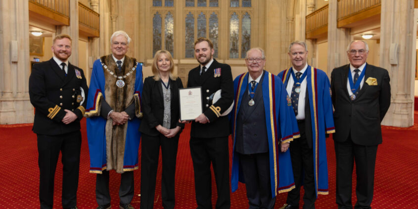 This year, we were delighted to be able to present our Sailor of the Year Award to the ship’s Navigating Officer, Lt Pierce Tattersall, at our 39th Annual Tacitus Lecture, at Guildhall, in the presence of The Lady Mayor.